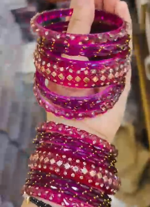 Royal Pink Raindrop Bangles Set – Bridal Chooda with Mirror & Stone Work